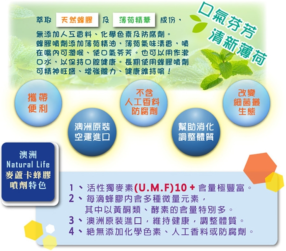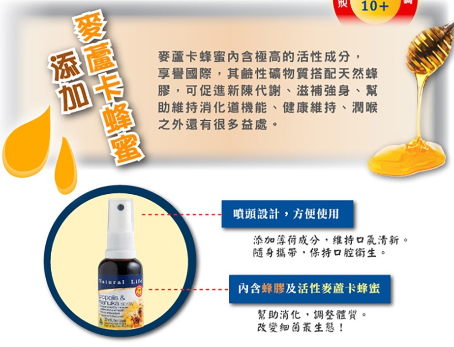 ★含蜂膠及活性麥蘆卡蜂蜜