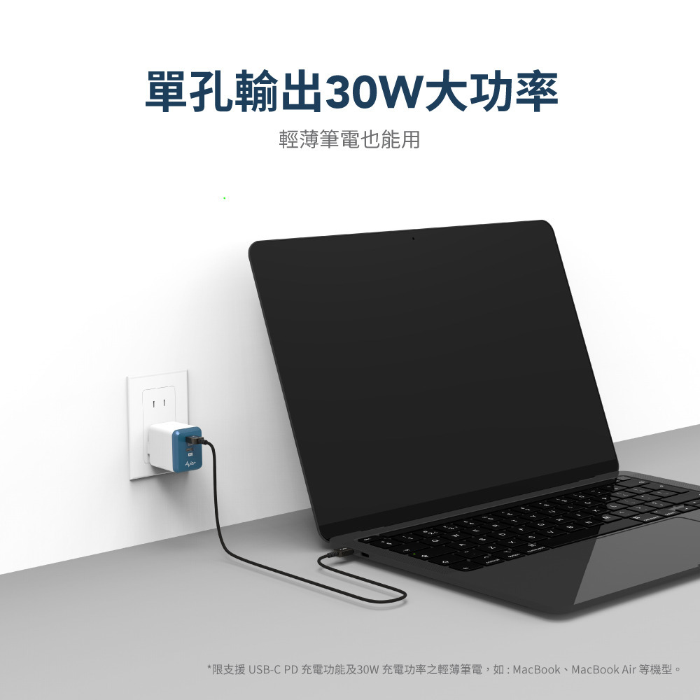 1. 單孔輸出 30W 大功率,輕薄筆電也能用