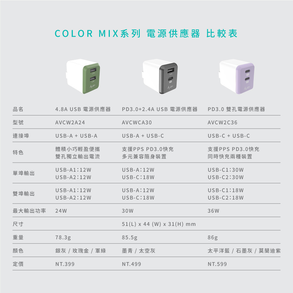 PD3.0 雙孔電源供應器,雙 USB-C 搭載PPS PD3.0 快充技術,通過 BSMI 認證並以智能 IC 晶片提供五大保護機制,最高 36W 大功率的規格設定,讓您疾速快充、瞬息滿電。