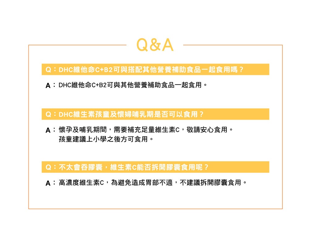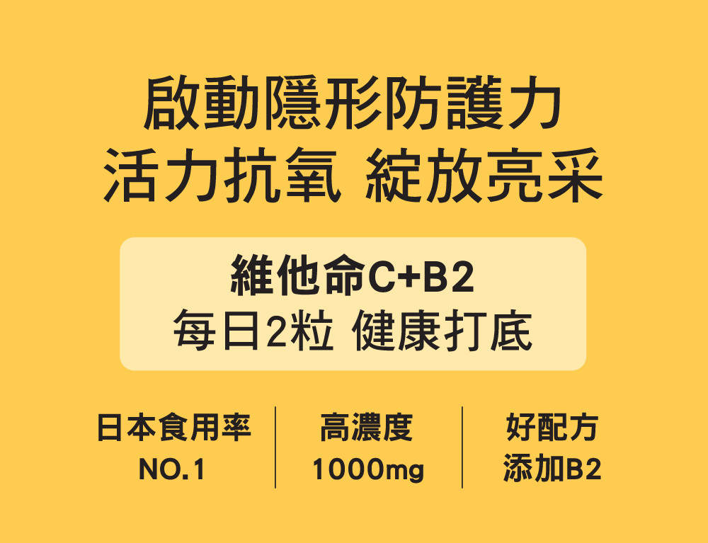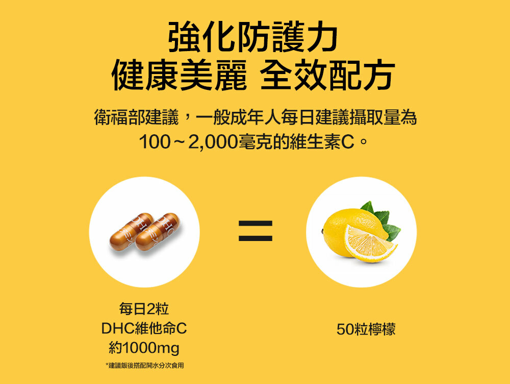 DHC維他命C+B2每粒中含有500mg的高濃度維生素C,相當於33顆檸檬的維他命C含量,同時添加具有美容功能的維生素B2,是一款能夠創造青春活力及維持健康美麗的美容維生素。