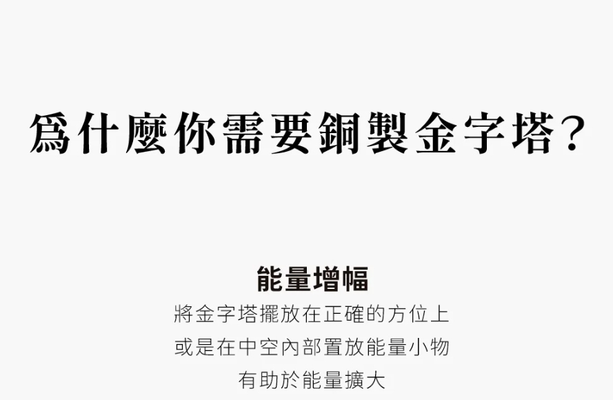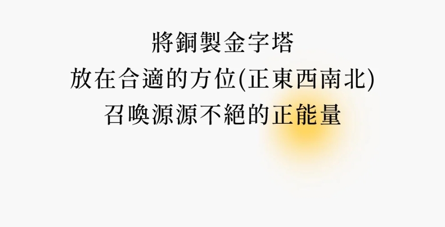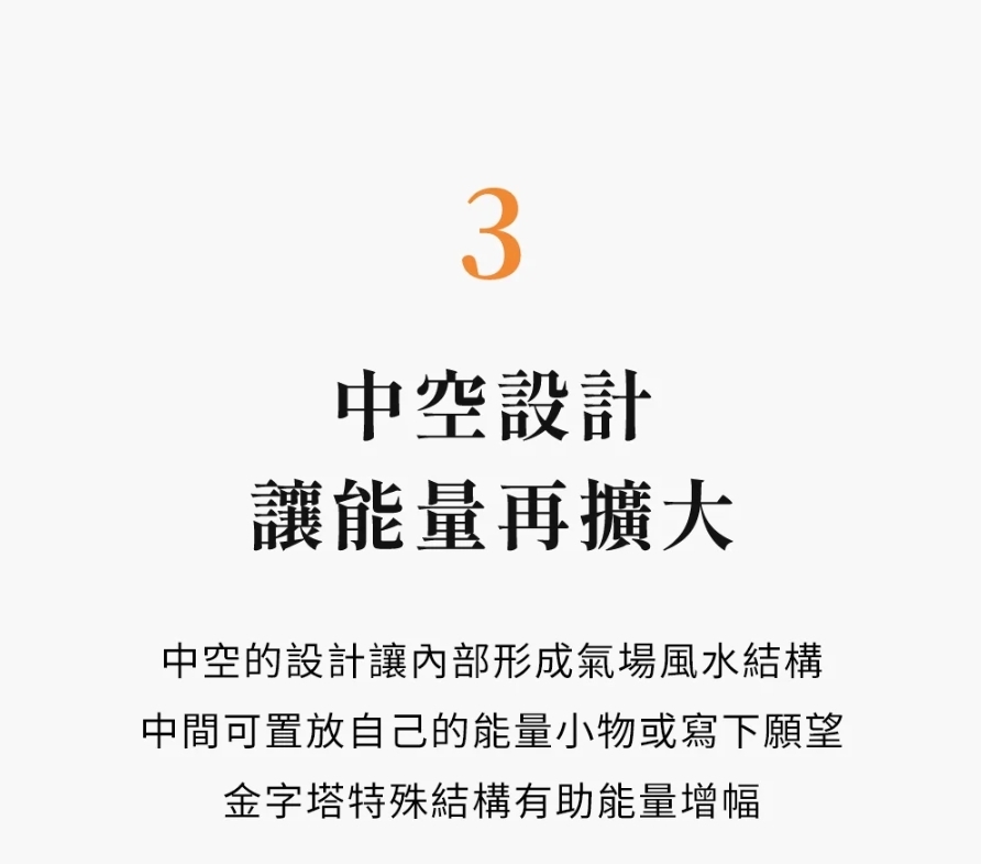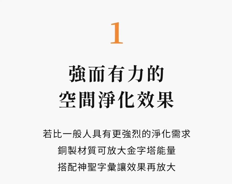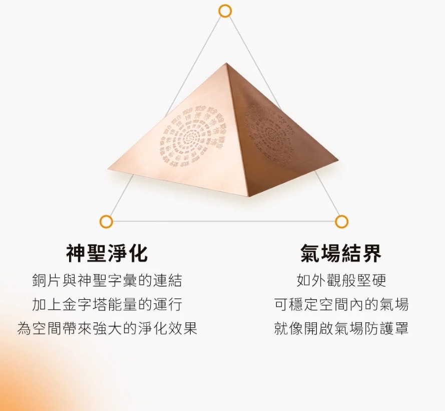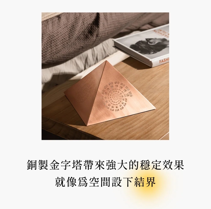 金字塔結構本身具有獨特能量,一比一還原呈現,如同空氣淨化器的銅製金字塔,讓氣場持續循環與更新,帶來強大的穩定效果。
