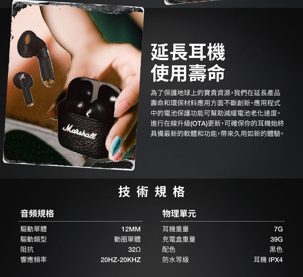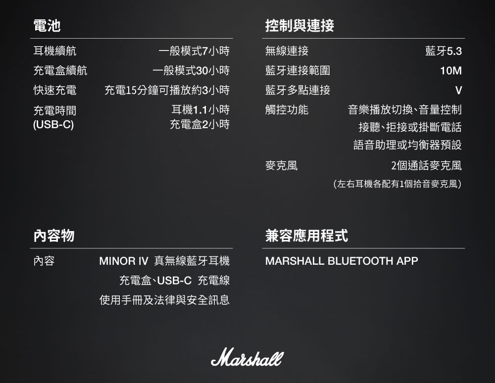 Marshall Minor IV 真無線藍芽耳機 第四代(經典黑)