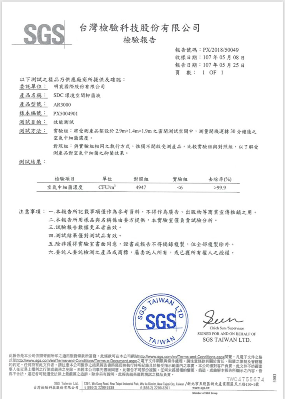 4. 強效殺菌 / SGS檢驗證實,可在半小時內去除空氣中99.9%細菌