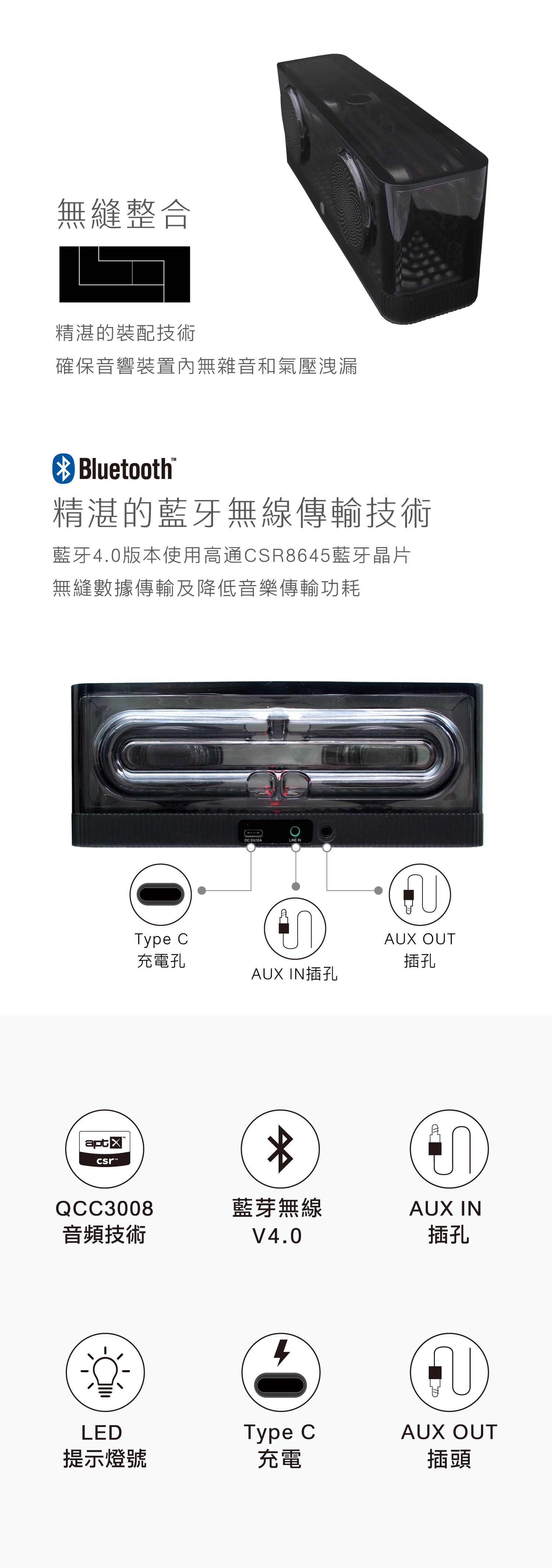 .LINE IN / LINE OUT ⽀持⾳源輸入輸出